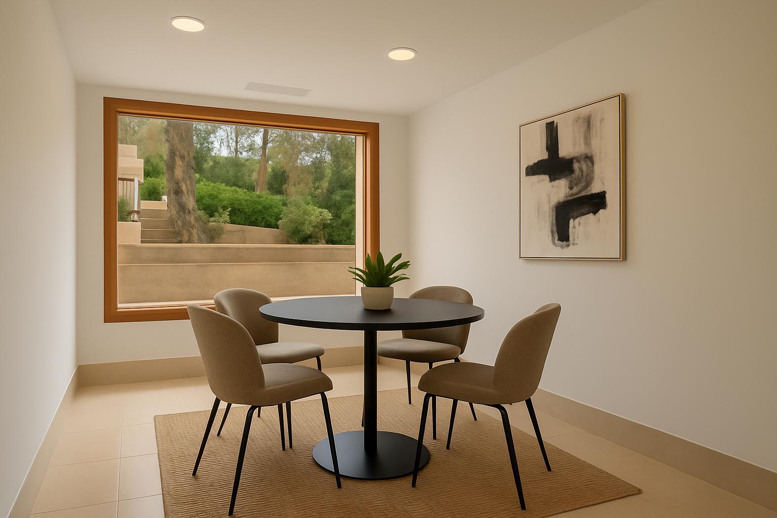 Nuestros oficinas cuentan con luz natural, acabados de alta calidad y zonas comunes equipadas, además de 3 baños completos y un jardín exterior con vegetación mediterránea para desconectar o reunirse de forma informal.